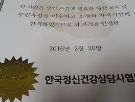 [상담심리전문가 강의참석]건강증진상담사 1급 강의참여 (0) | 2016.02.21 |